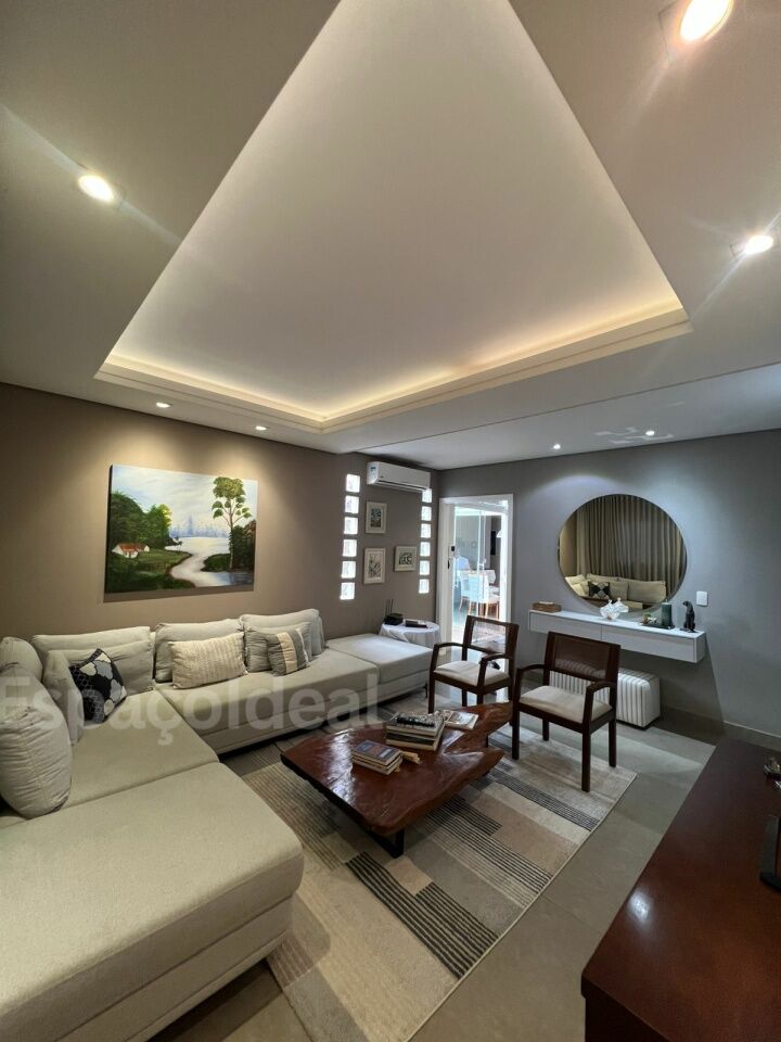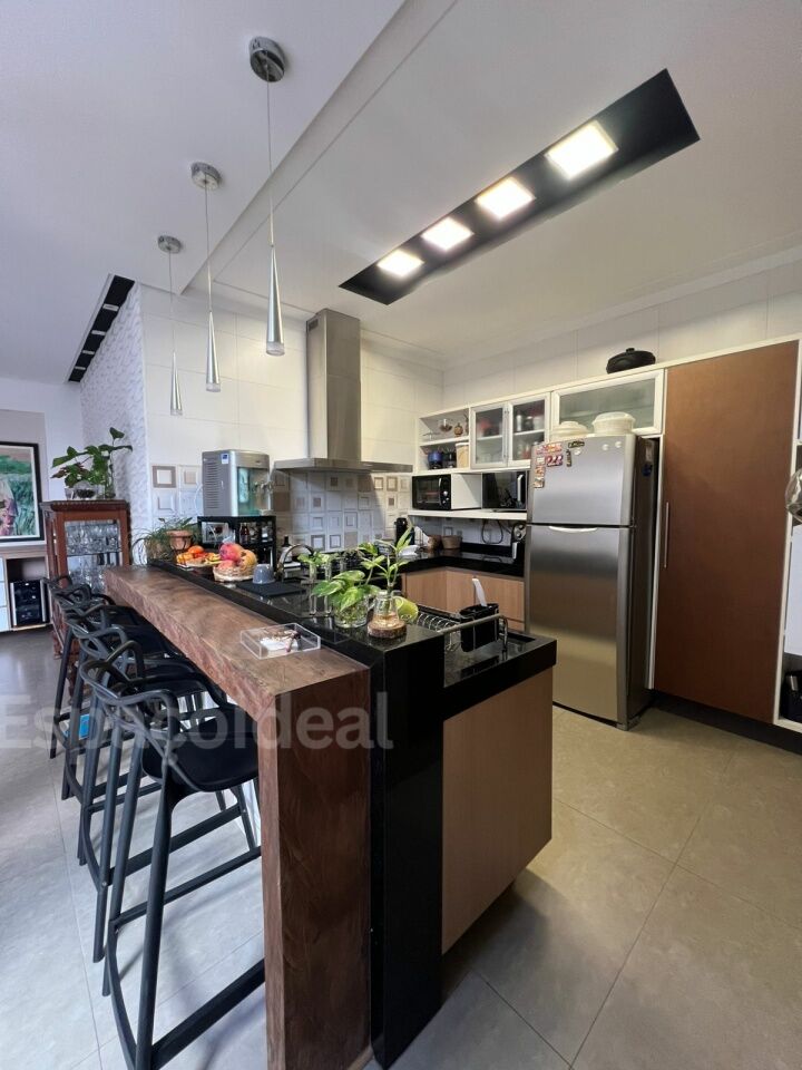 Casa moderna e alto padrão com 2 suítes com piso vinílico, sendo uma com ar-condicionado, jardim de inverno e banheira de imersão. Possui escritório com lavabo, quarto de despejo, sala de jantar, cozinha, sala de estar, lavanderia e jardim.